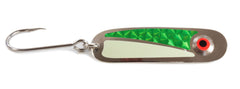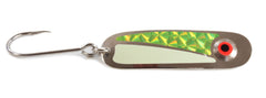 PEETZ is pleased to reintroduce this legendary lure with some exciting updates. Each Hookum #4 trolling spoon is individually pressed and hand polished at PEETZ workshop in Victoria, BC, using top quality, solid brass that is then nickel coated. They are finished using a wide array of heavy-duty UV and Glo-rich Mylar colour combinations with eye-popping prismatic, holographic and iridescent patterns.